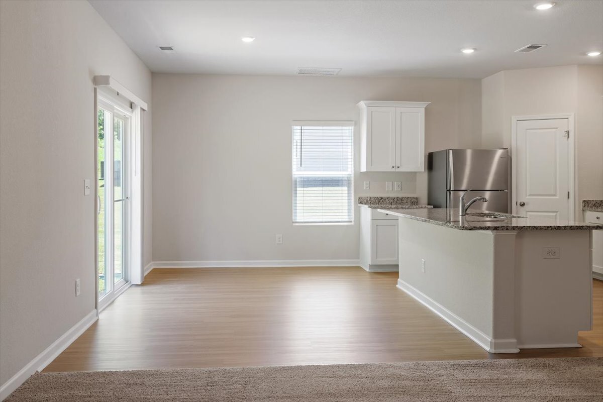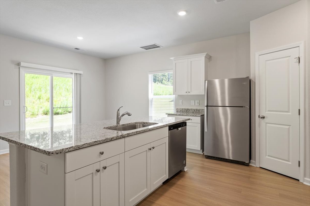 Welcome to this like-new 4-bedroom, 2.5-bathroom home with a 2-car garage in a desirable, vibrant, and well-maintained community! From the moment you step inside, you'll be greeted by an abundance of natural light and a thoughtfully designed open floor plan that provides both comfort and functionality for everyday living and entertaining. The main level features luxury vinyl plank flooring that adds warmth and durability, complemented by granite countertops throughout the home for a polished, upscale look. The spacious living room offers plenty of space to relax and flows seamlessly into the kitchen and dining area, creating a central hub perfect for hosting gatherings. The kitchen is a showstopper, with a kitchen island boasting white 42-inch cabinets, stainless steel appliances, and generous counter space—ideal for both meal prep and casual dining. Upstairs, retreat to the primary suite with a vaulted ceiling, your private haven featuring walk-in closets and a luxurious en-suite bathroom with a separate shower and extra built-in shelving for convenient storage. Three additional bedrooms share a well-appointed full bathroom, offering flexibility for family, guests, or a home office setup. Outside, you'll find the front porch and backyard, providing plenty of room for outdoor dining, play, gardening, or simply enjoying your own private retreat. Residents of this community enjoy access to fantastic amenities, including a playground, picnic area with grill, and a dog park, making it ideal for families and pet lovers alike. The location offers easy access to nearby destinations—just minutes from Downtown Angier, Fuquay-Varina, Lillington, and Campbell University—giving you the best of small-town charm with close proximity to shopping, dining, and schools. Don't miss the opportunity to own this beautifully maintained home that combines modern finishes, thoughtful design, and a convenient location. Schedule your showing today! The seller has never occupied the home.